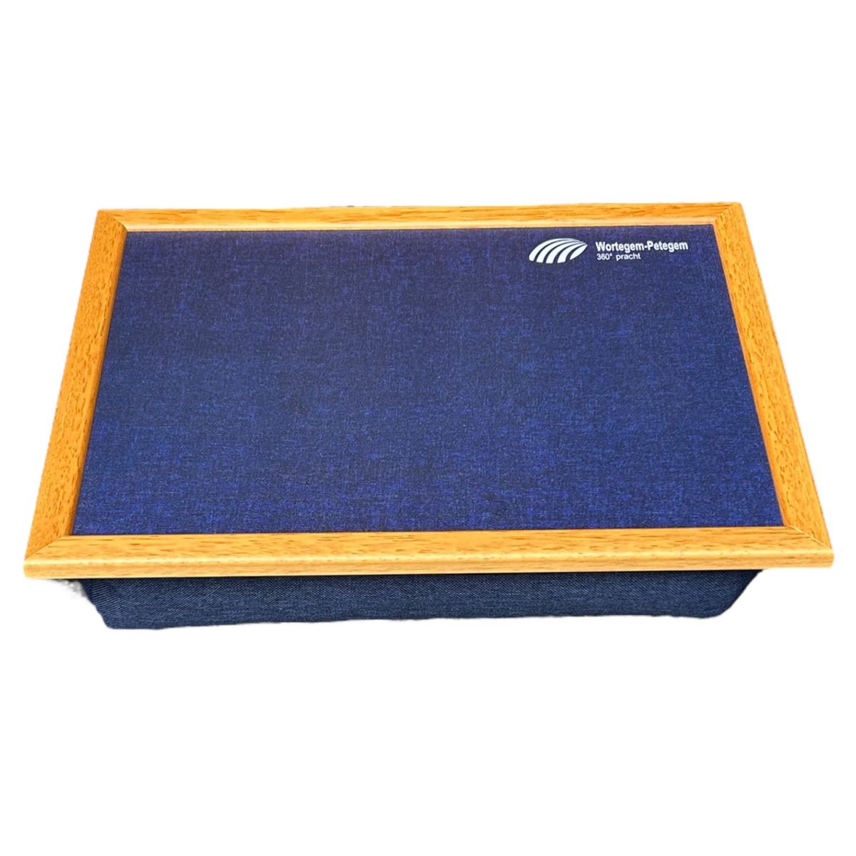 Een laptray met bedrijfslogo